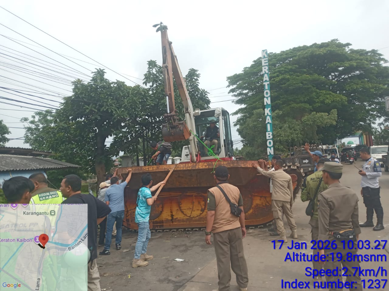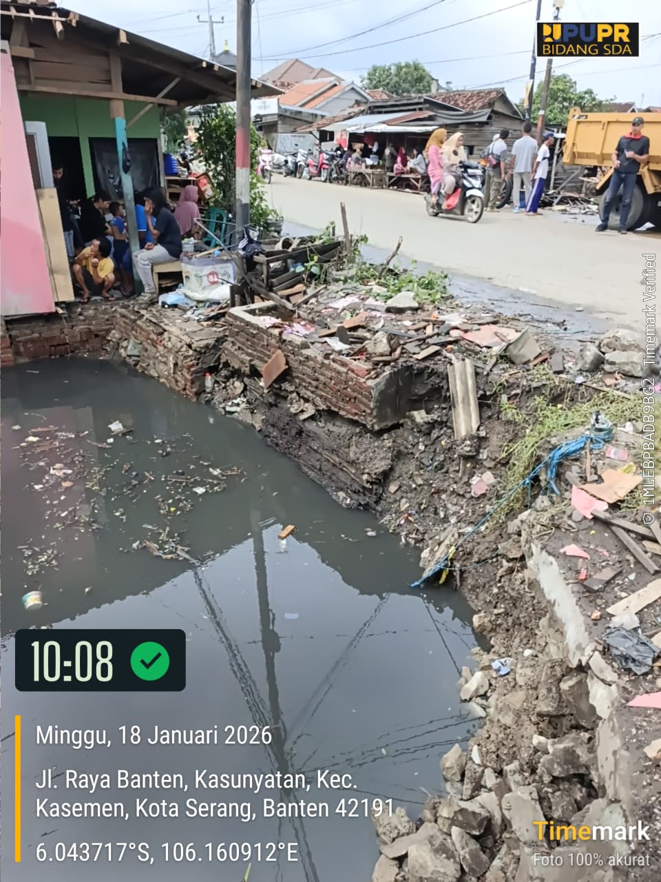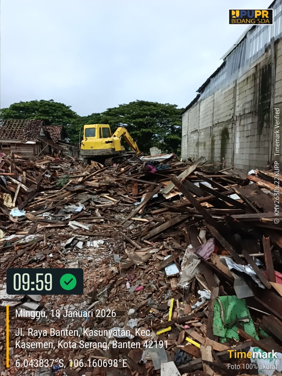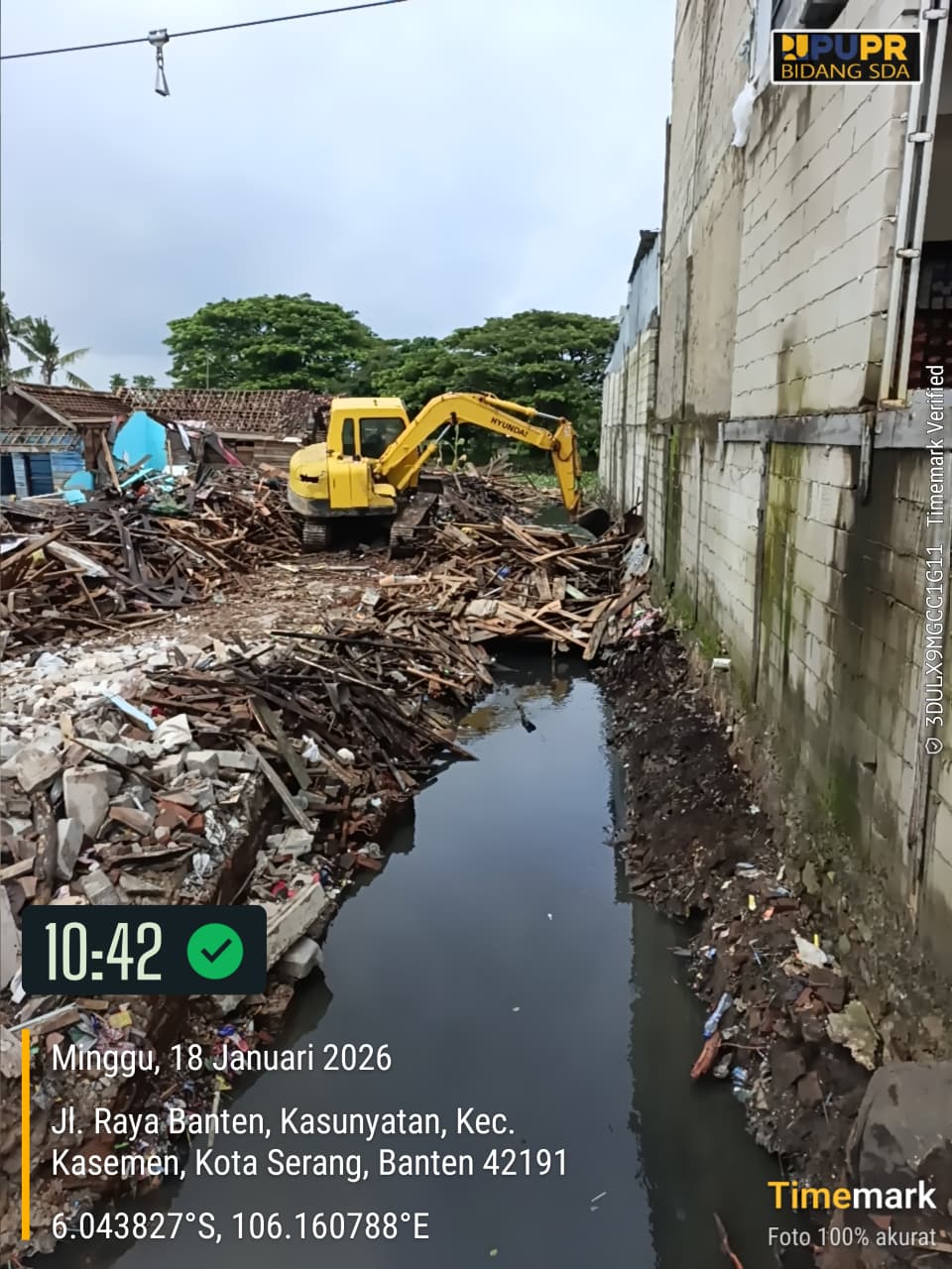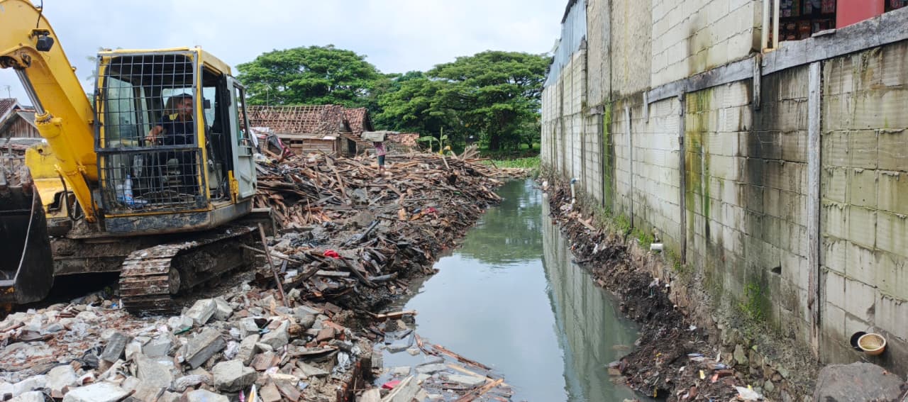 Dinas PUPR Kota Serang melakukan Normalisasi Kali Kroya dan bangunan liar di sepadan kali (hari pertama). Kec. Kasemen (17 Januari 2026)